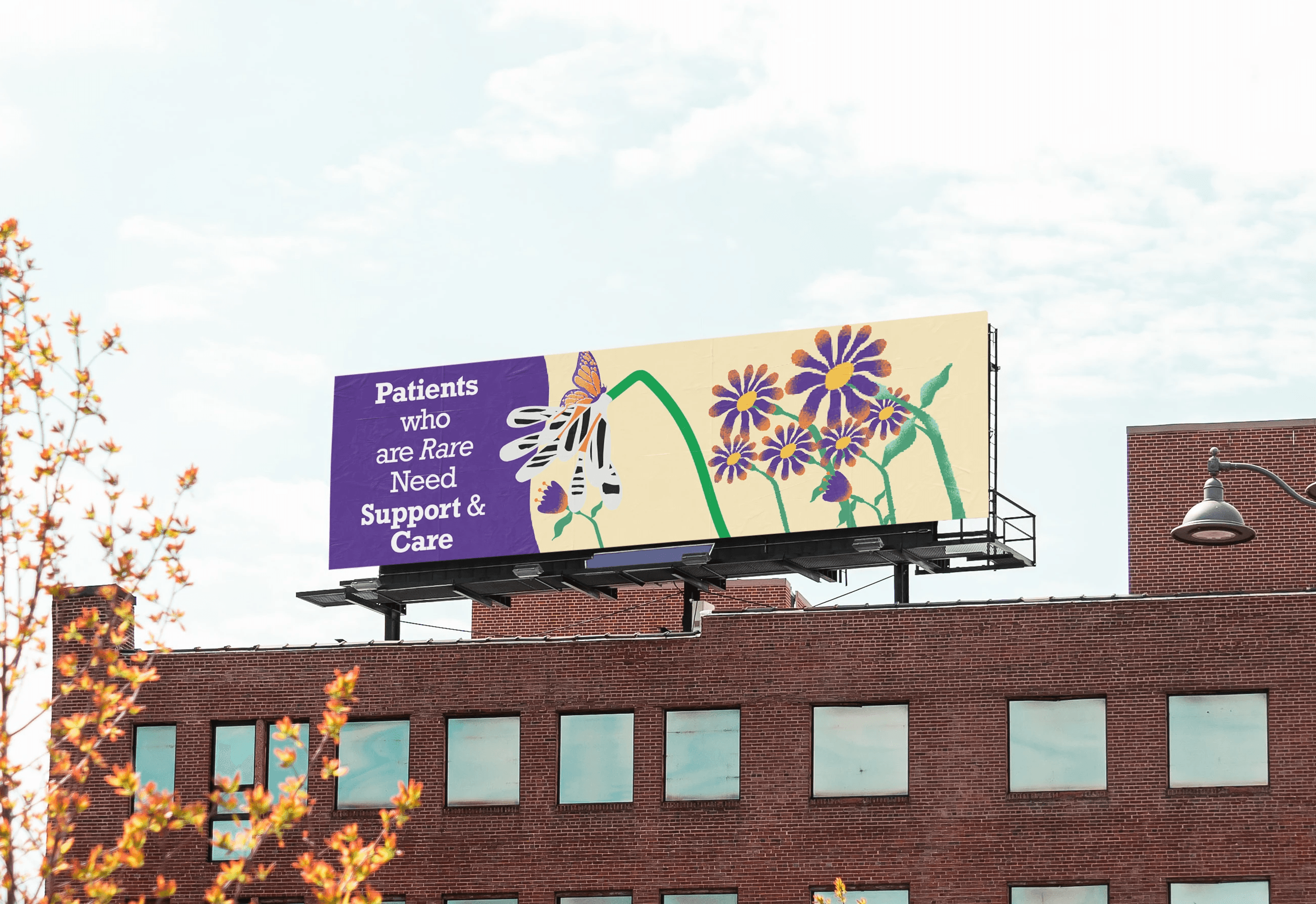 This campaign design brings visibility to the unseen experiences of those living with hypoparathyroidism, symbolized through a monarch butterfly resting on a uniquely striped flower. Blending Amolyt’s vibrant brand colors with rare disease symbolism, the piece reflects struggle, resilience, and the company’s mission to uplift and support the community.